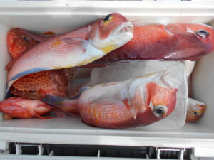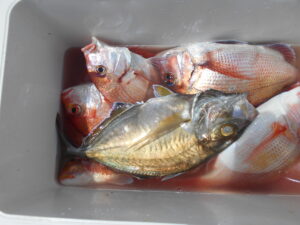 アマダイ、オニカサゴ、カイワリ、マダイ、キダイ多数他釣れました。